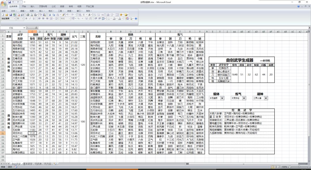 2023.02.19 公测前期更新,应该是最后一更了,优化了自创武学属性显示,增加了护体属性,因为炼丹系统大改屏除旧版丹方表,重新设计了丹药表,包括了所有丹药属性,和药材鱼药属性,新加了123段药的合成秘方,只研究了一部分,其他的还没合成过,所以没推理,其实是懒,懒,懒,内测关服前几天才开始研究炼药,哈哈..可以通过药材属性和丹药属性自行推理丹药配方,搞清楚甘苦,辛酸1药材对1药材抵消药味就很容易推理出来了..