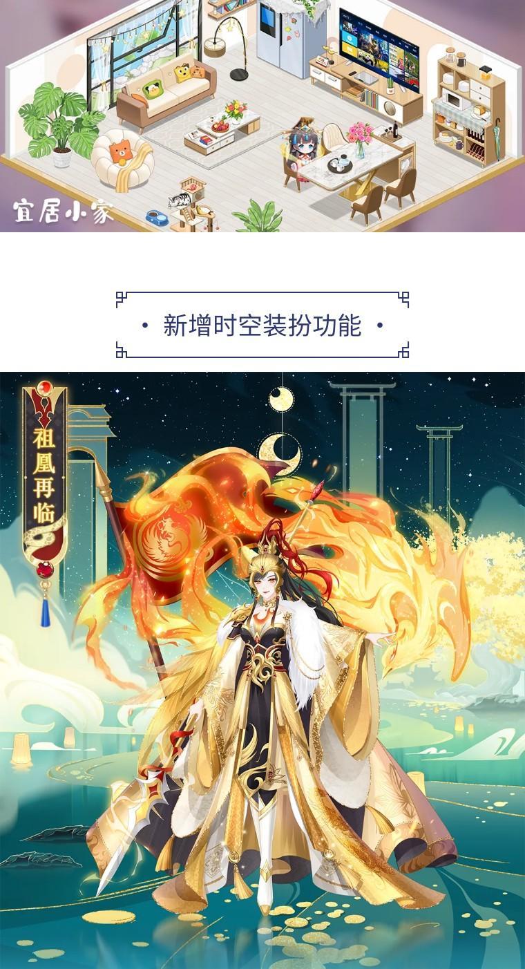 2、时空装扮为动态服饰套装,有动态效果和专门的战斗形象,每个部件都会有动态效果;该装扮附加全体侍从属性,可进行升级,等级越高属性越高;新增时空装扮“祖凰再临”,可通过血脉充能获取装扮部件合成碎片