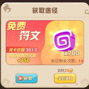 tap1通过攻略:每天都有1到4个任务做完就可以领取到几百符文,完成活跃度打开宝箱也能获取几百符文,看广告翻5倍,完成所有有任务一天最多能获取2700符文,最少也能获取1200符文,主要是看自己一天的任务进度。tap2大转盘:每天都有3次转盘机会,转到符文栏就可获取300符文,装到10倍,再转到300符文,那么,恭喜你将获取3000符文。