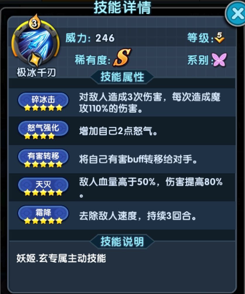 妖姬.玄专属主动技能-极冰千刃(S)3费
