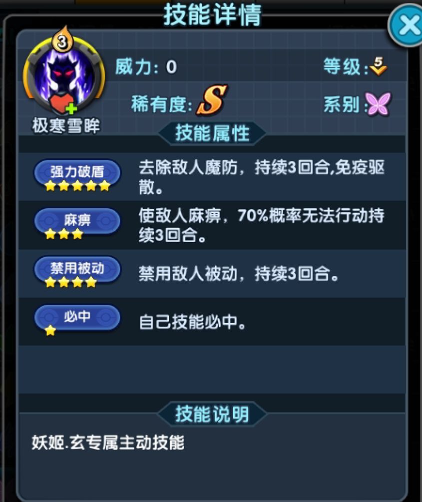 妖姬.玄专属主动技能-极寒雪眸(S)3费