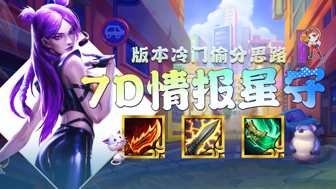 大家好,我是小嗨。本期为大家带来的是新赛季上分阵容——7D情报星守阵容看点:之情特工在版本更新优化中,得到了新的加强,而情报特工的高爆杀高伤害,特别适合高攻速的英雄,并且如今是独家没有同行的,今天给大家分享这套7D星守卡莎。