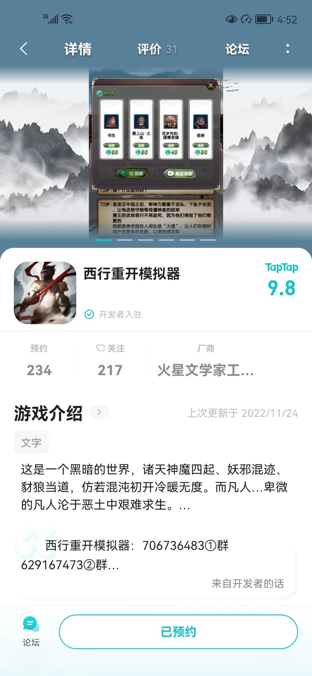 预约《西行重开模拟器》,并在该帖内发送预约成功的截图,如:以下示例
