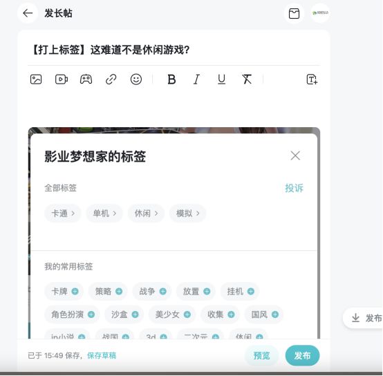 3.打上标签后截图保存并使用【发长图】发布至论坛