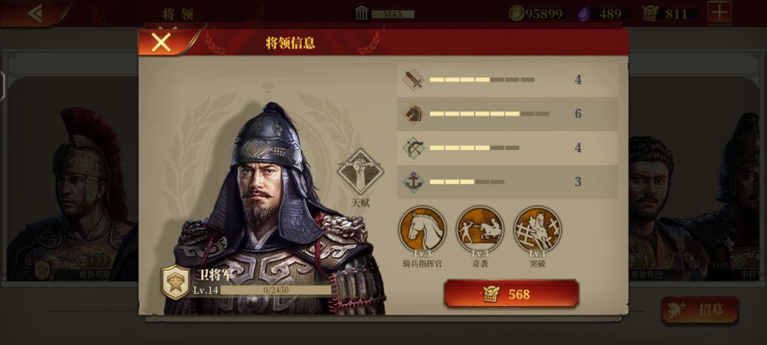当然以上是我把卫青如果触发一次骑指,的情况下,与霍做对比的。骑指,看脸的技能,保证上限的技能,有没有指,往往决定了这将合不合格。如果卫青靠骑兵兵种连击打出两刀,因为连击上限是4刀,所以理论上讲,他最多触发两次骑指。