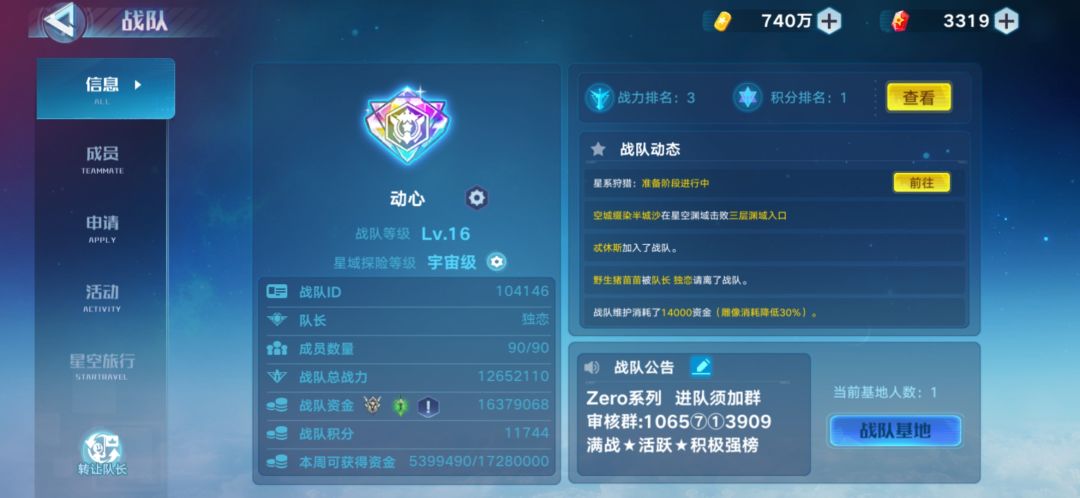 动心 招活跃满战 每周积极参与战队内活动(渊域&狩猎)积极拿榜 目前战队两个榜基本都能稳前十 每月战队赛也能前十