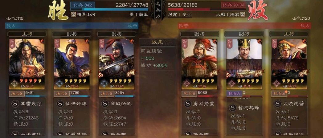遇到虎臣弓,有大量减伤和士别的配合,也是低战损打穿了对面三个武将!