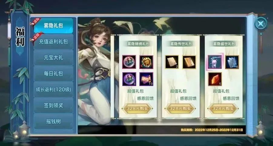 全新雾隐礼包12月25日-12月31日限时上架中,除了多重好物超值放送,还可解锁全新背部挂件【稚狐莲心】!