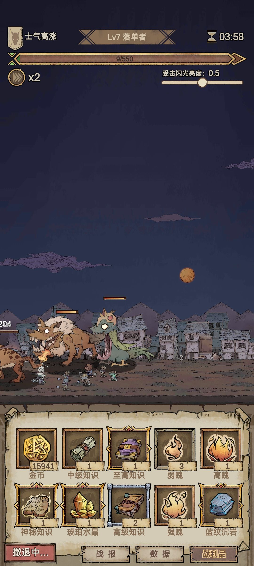 然后一直召唤地精属性差不多就直接出征,时间拖越长防御越高,所以召唤几只一次性击溃,召唤到占卜商店前一次性出征
