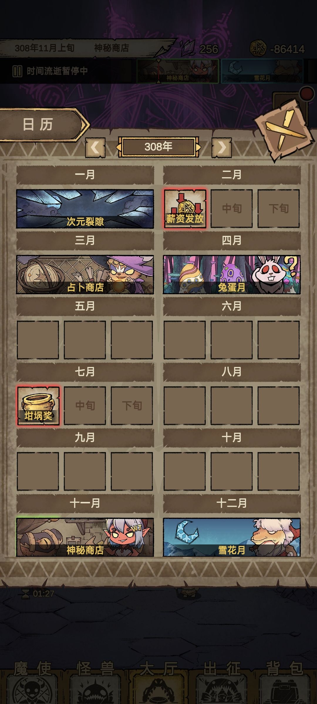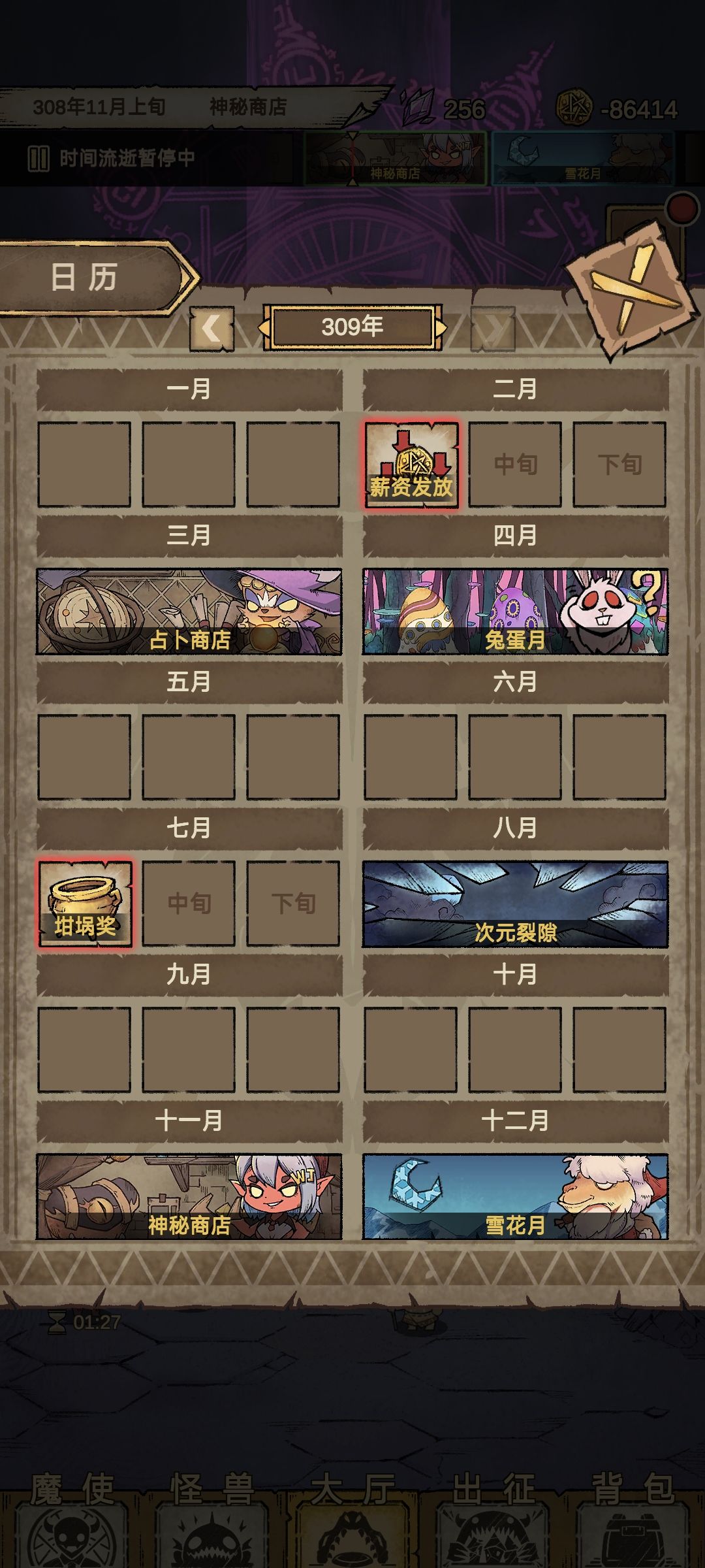 简而言之,在日历刷新前没有次元变异体,刷新后的日历就会刷出次元裂缝,日历只能看到今年和明年的