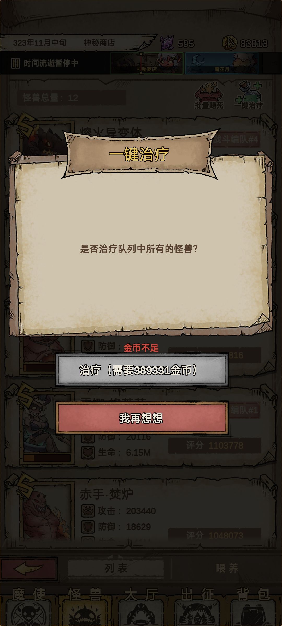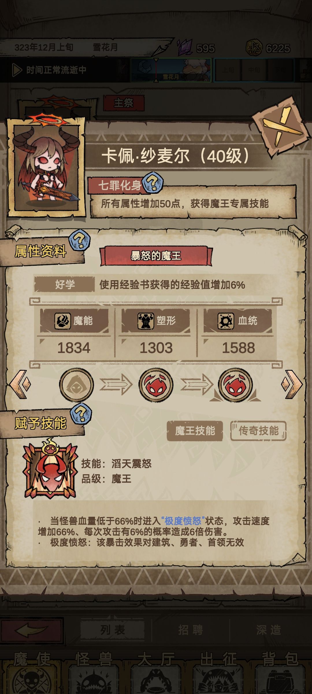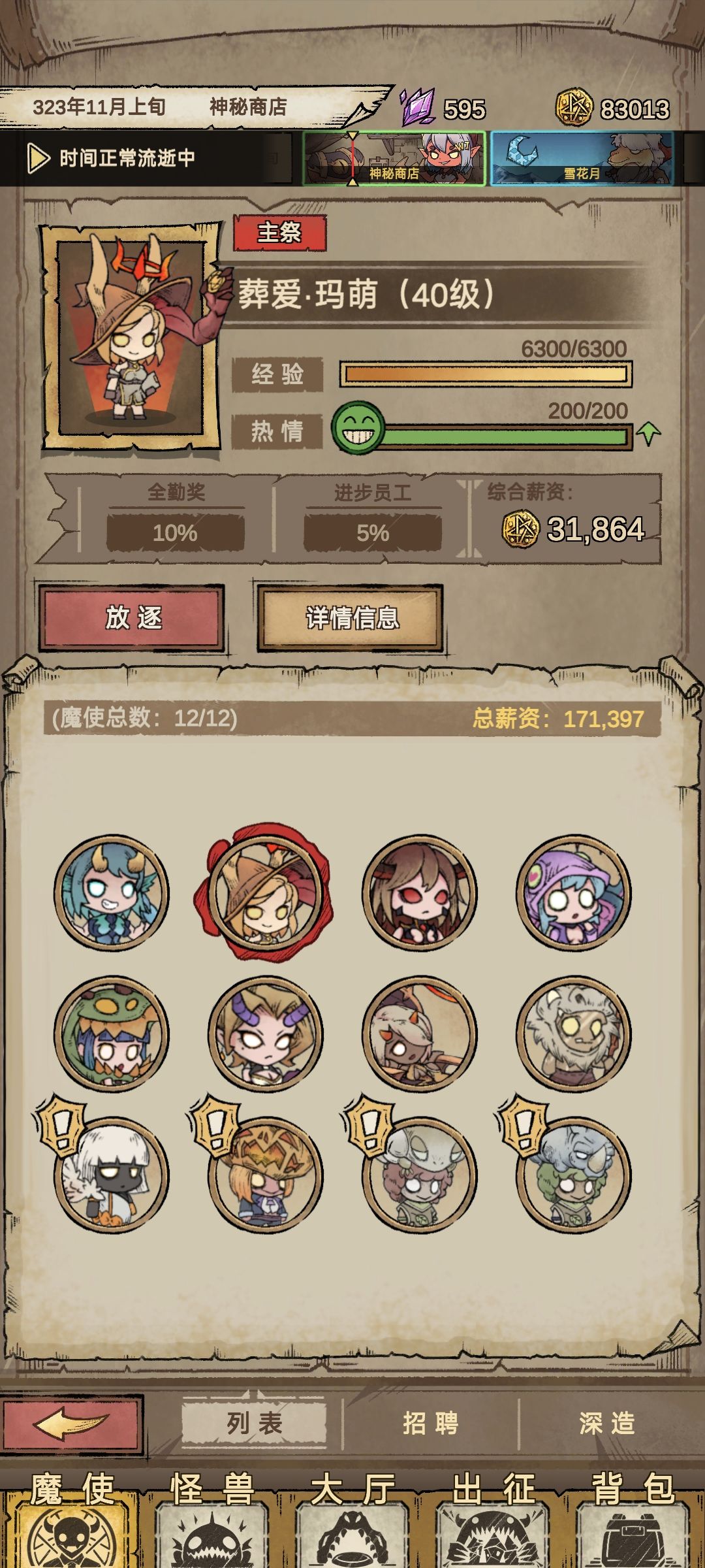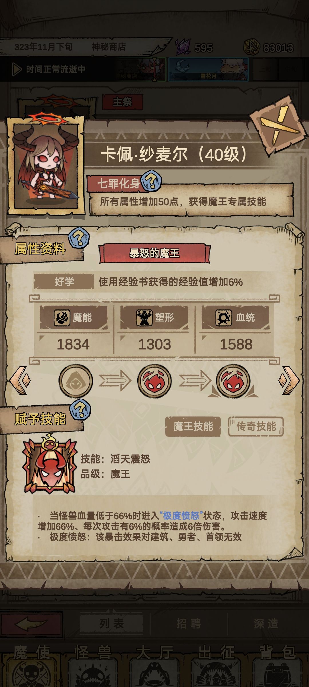 过了第一关选择魔兽对应暴食任务,可以一直刷熟练度钱不够就出征,一直招聘一直刷魔兽熟练度