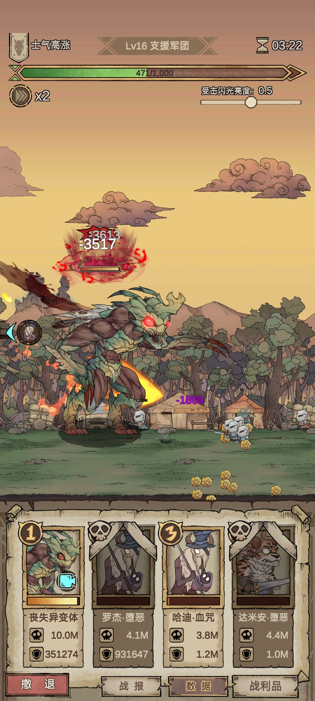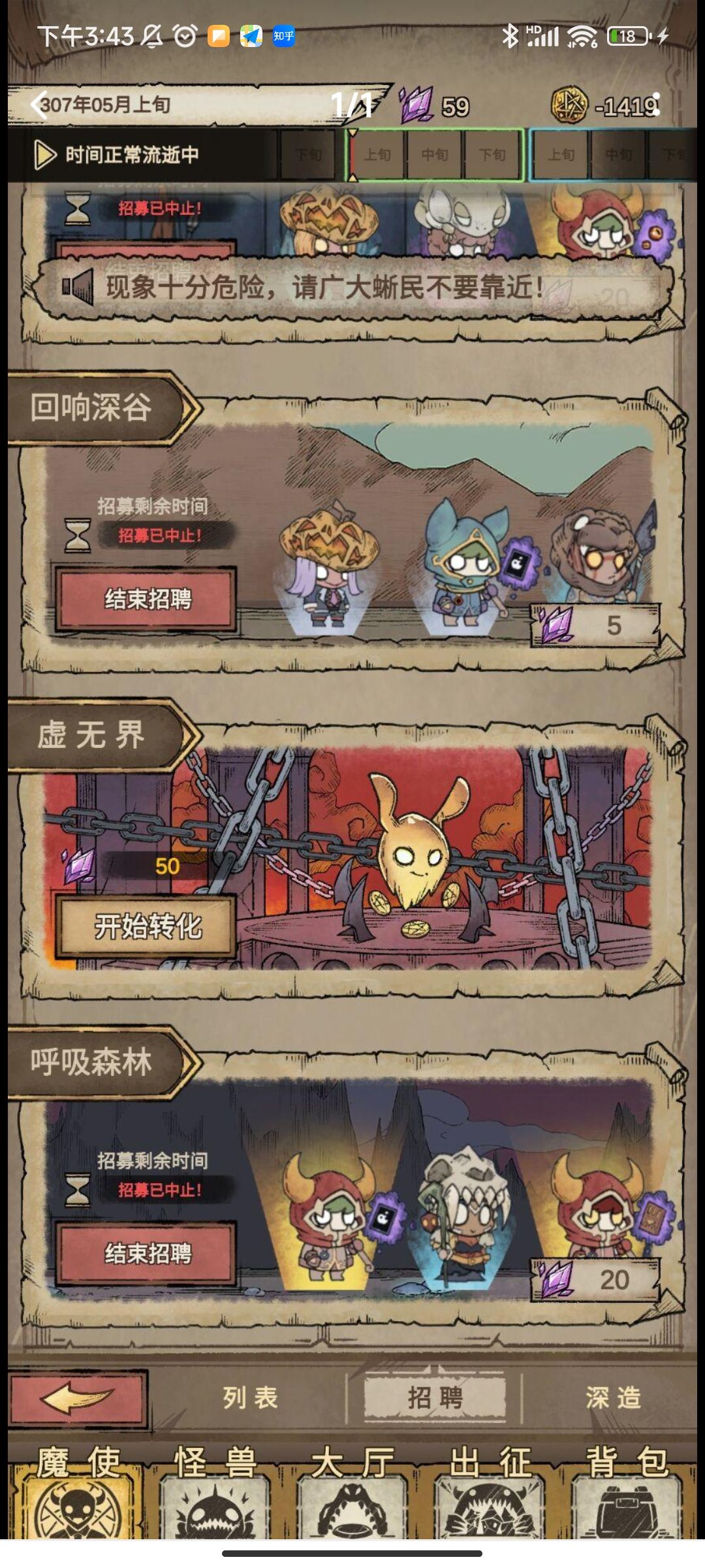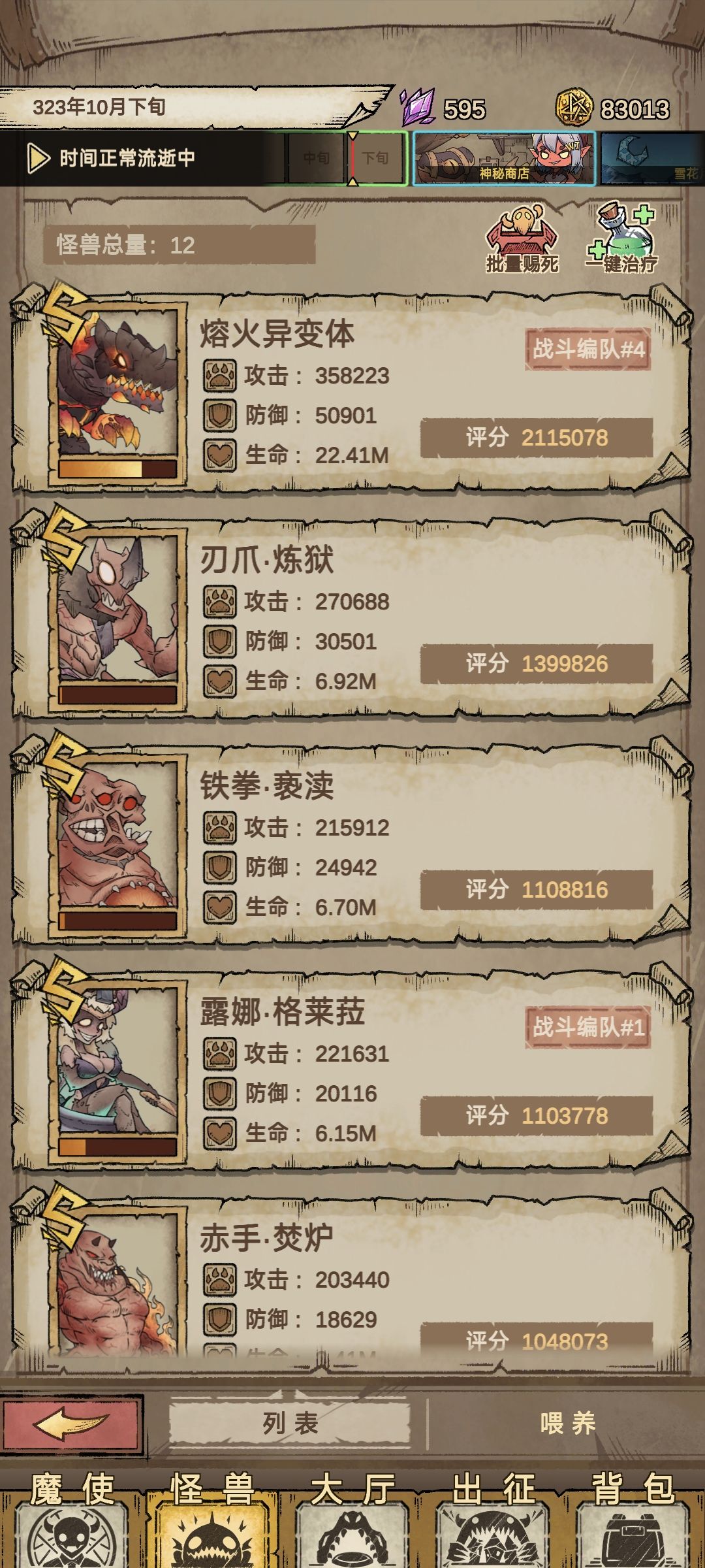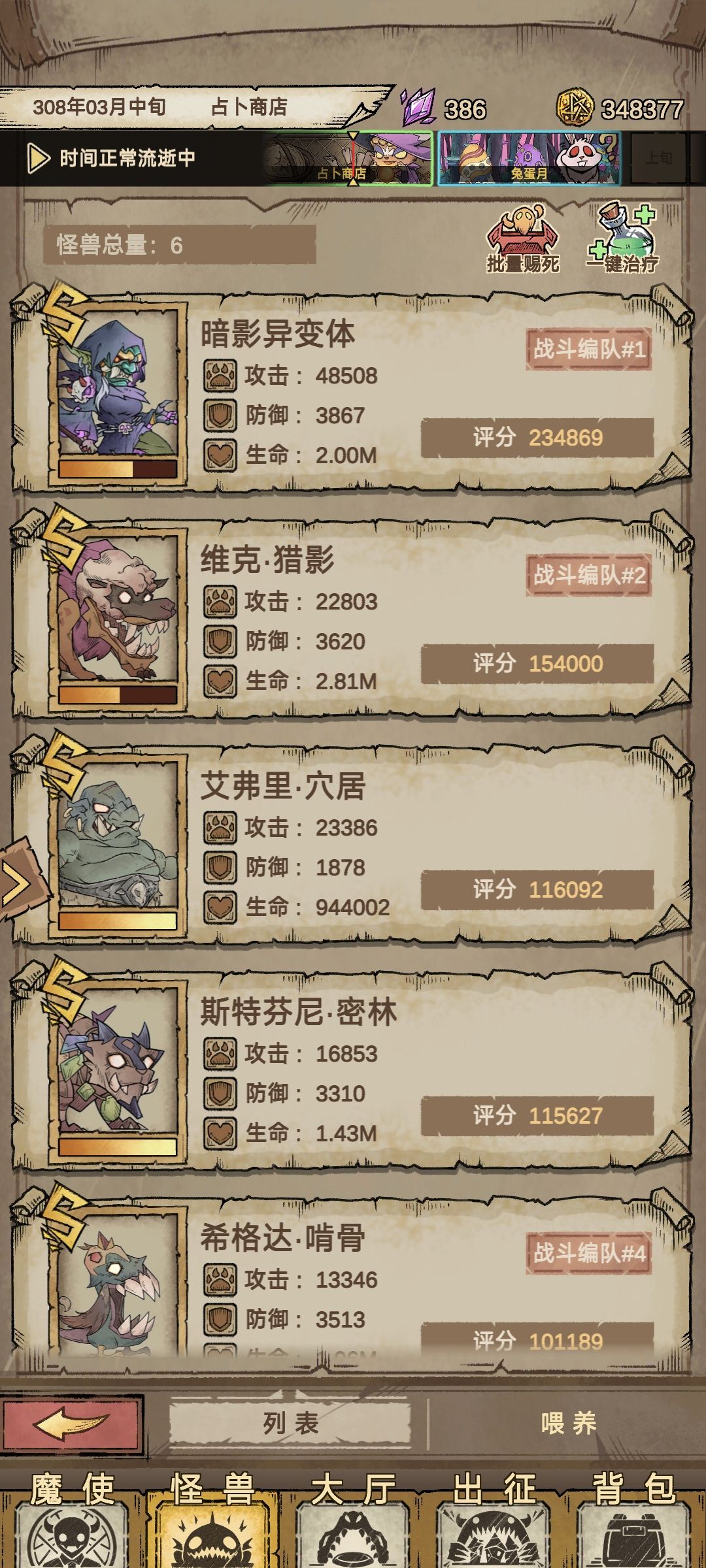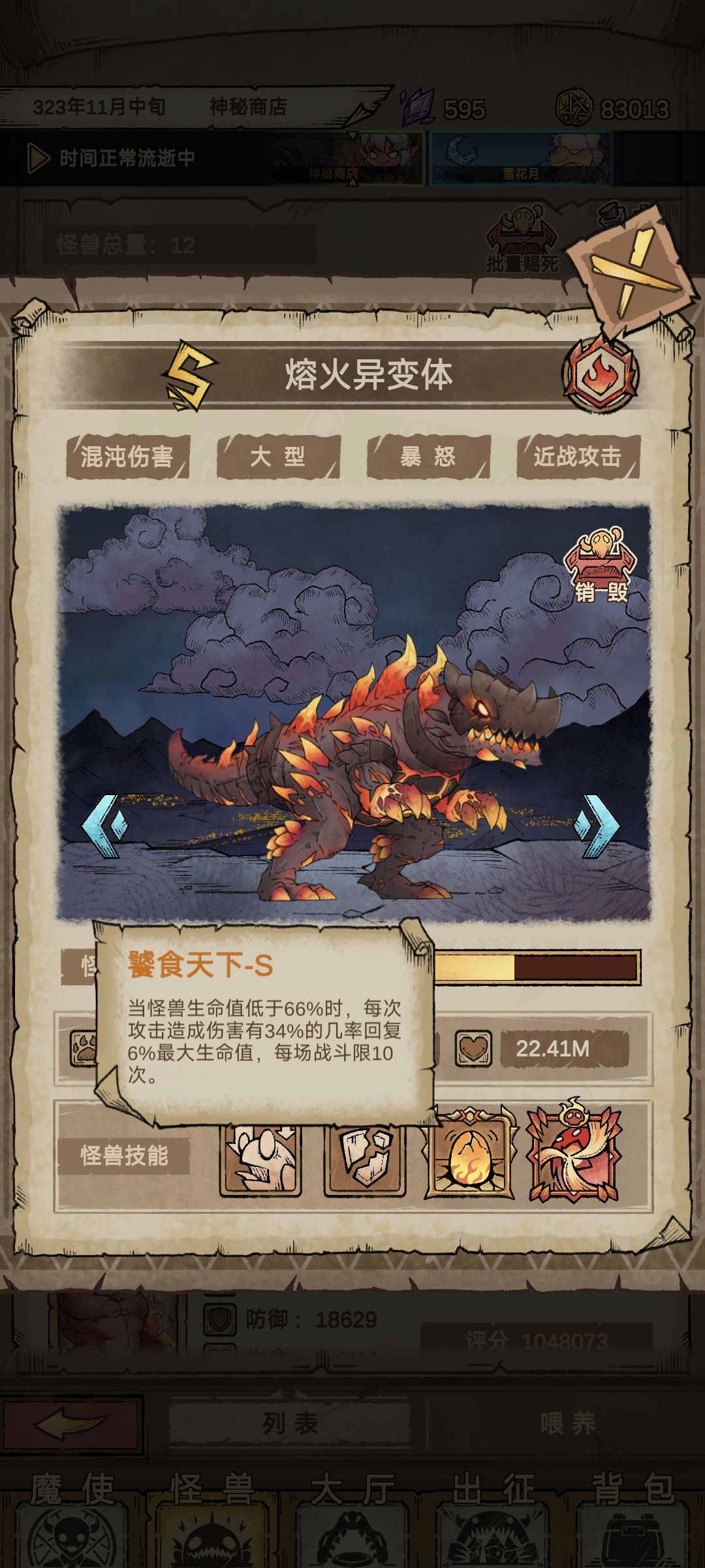 过了第一关选择魔兽对应暴食任务,可以一直刷熟练度钱不够就出征,一直招聘一直刷魔兽熟练度