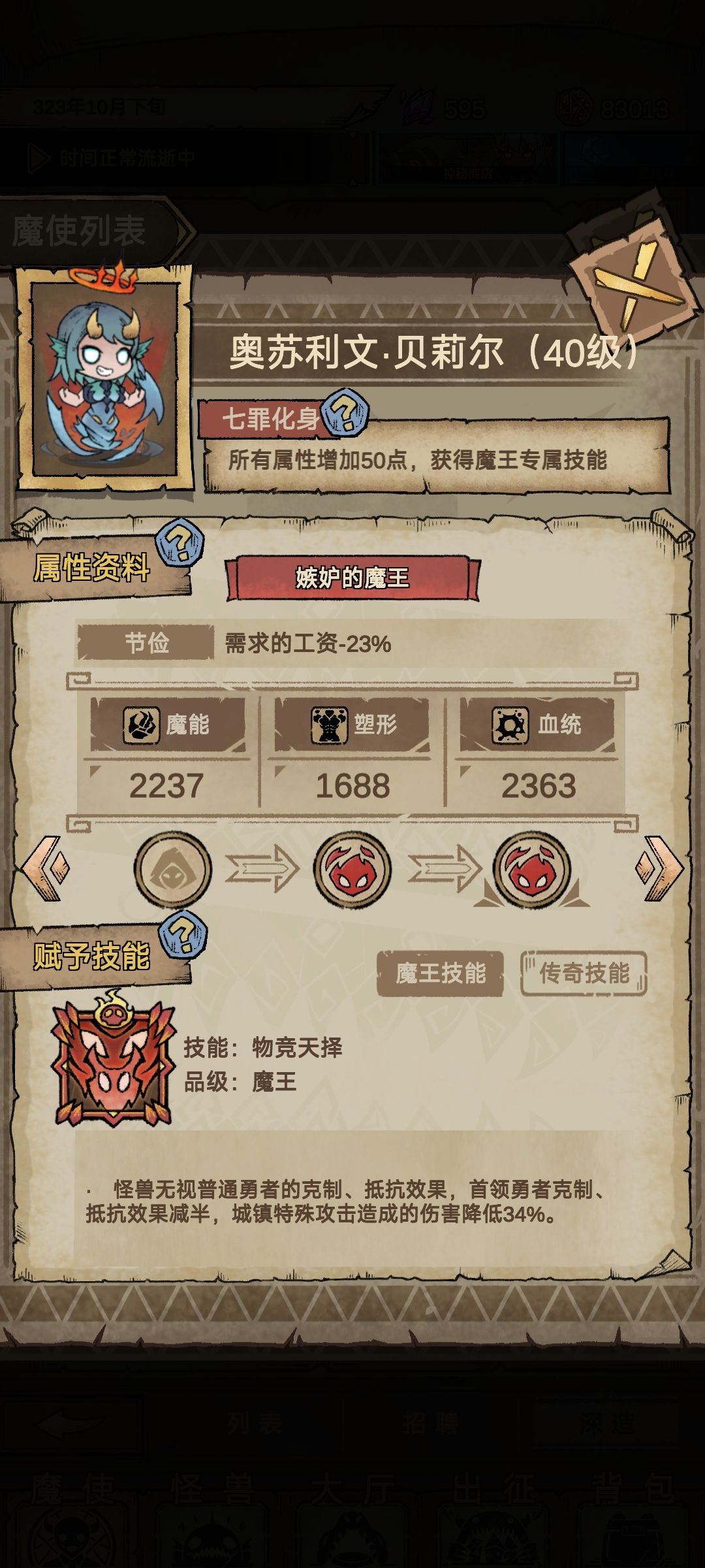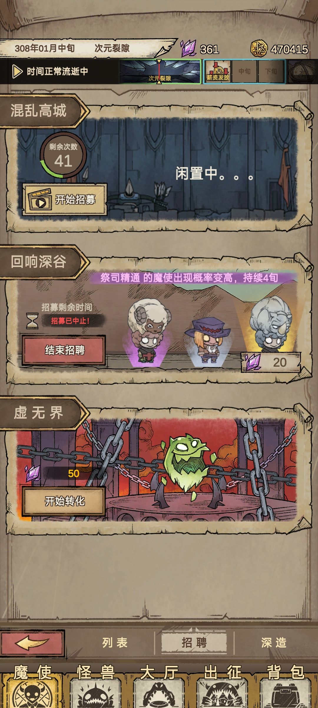 主祭尽早转魔王,刷天赋,魔使前期拿到什么用什么,一直招募换蓝换紫换到橙,橙色不用看技能无脑开养注重三维,无脑升级