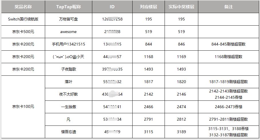 活动期间总楼层为3245楼,恭喜以下守护使大人获得踩楼奖励~!![[嗒啦啦4_比心]](https://img.tapimg.com/market/images/d28961d9ef2d62e62333b8d17a8612dc.gif)