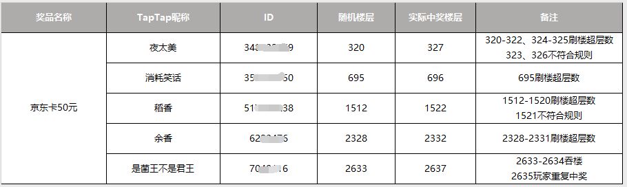 4. 一个ID仅有一次获奖机会,若重复获奖则奖励到下一用户ID楼层。
