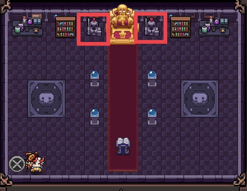 第三行第一个异域内,上方两个骑士雕像是隐藏宝箱,各点五下开启