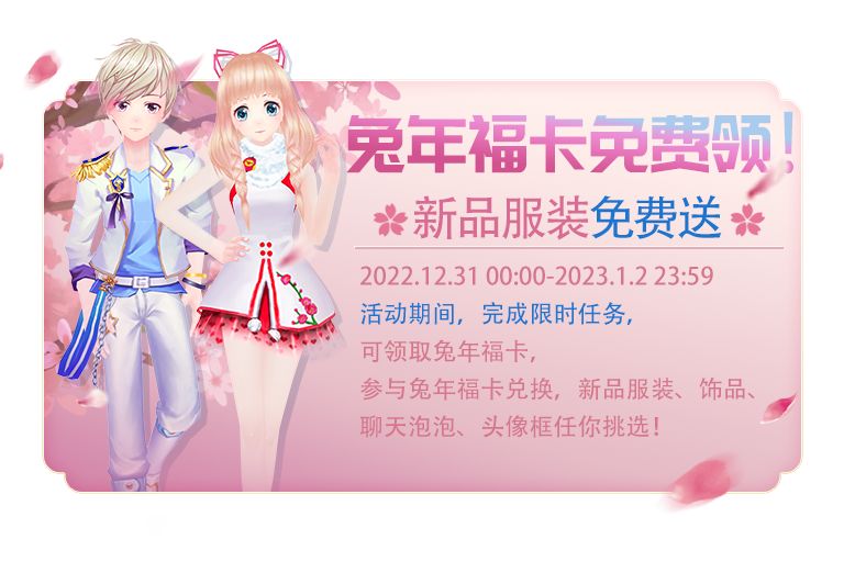 参与40次心动模式,可领取兔年福卡*3(兔年福卡可用于兔年福卡兑换活动,自由兑换头像框、聊天泡泡、饰品、新品服装等物品)