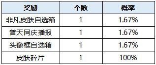 温馨提示:每抽必然获得皮肤碎片*1,60抽必然获得全部奖励。