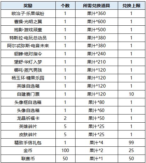 活动期间,做任务收集果汁即可兑换欧冶子·乐果缤纷、曹操·光明之翼、残影·游戏顽童等精美皮肤哟。