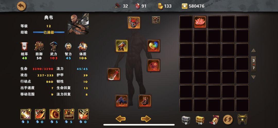 任务完成条件是:通关投石问路,奖励7金币,如果有月卡奖励翻倍,曹操、典韦装备如图所示,可以根据自己装备情况适当调整