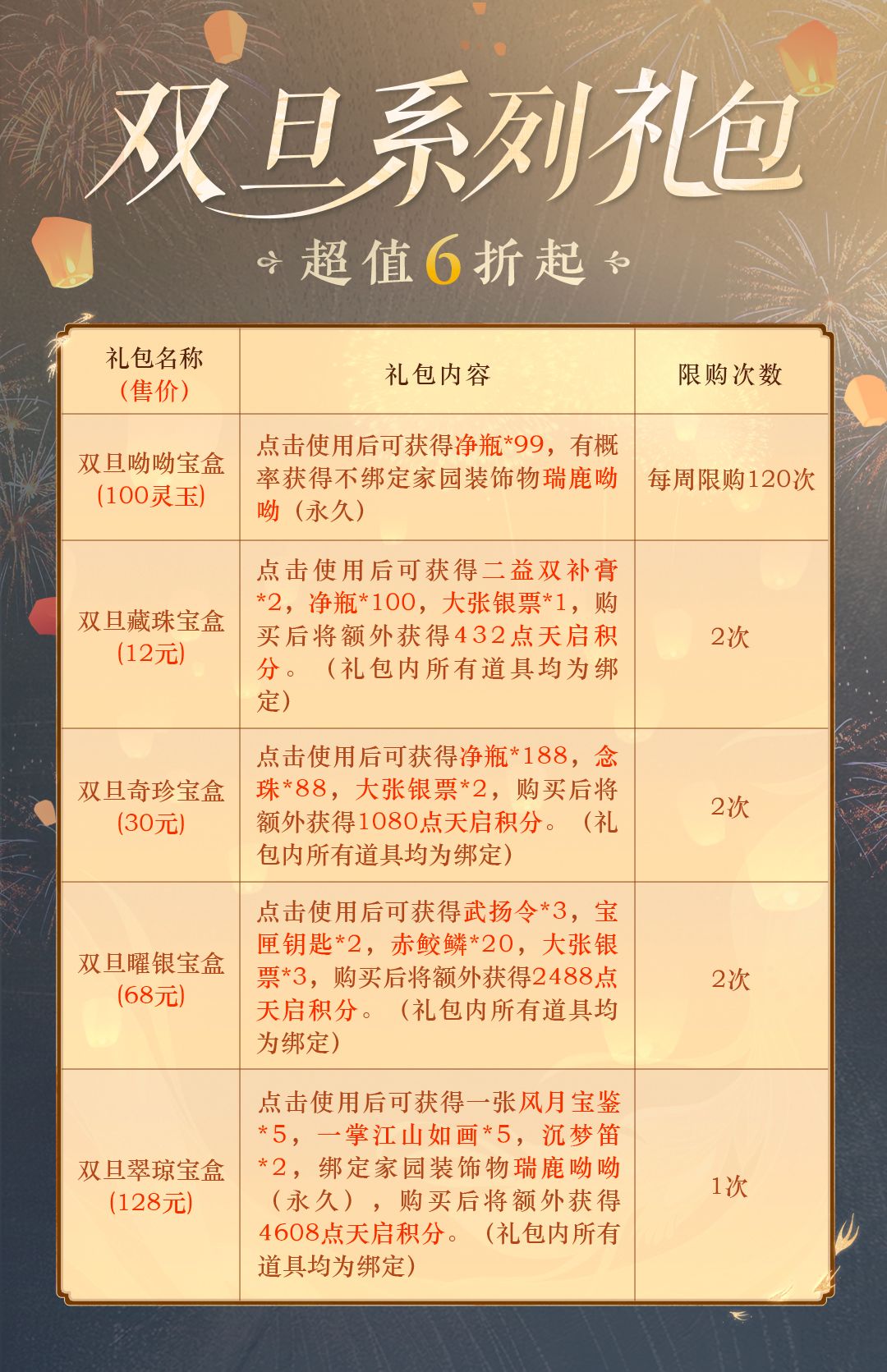 1. 福瑞同享,喜运双收!双旦礼包12月22日-1月3日限时上架,优惠多多,快去看看吧!