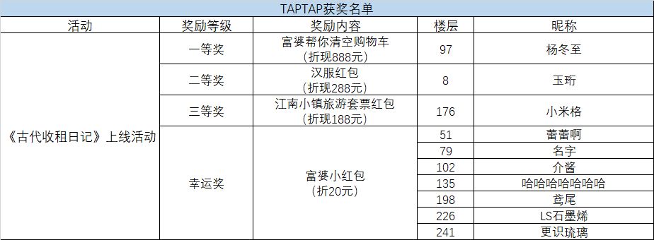 恭喜以上小东家!请获奖小东家于2023年2月3日24:00之前添加官方QQ:2803820662(记得备注:《古代收租日记》兑奖哦~),管理员会在截止兑奖前完成登记,逾期则无效,还请小东家们抓紧时间~