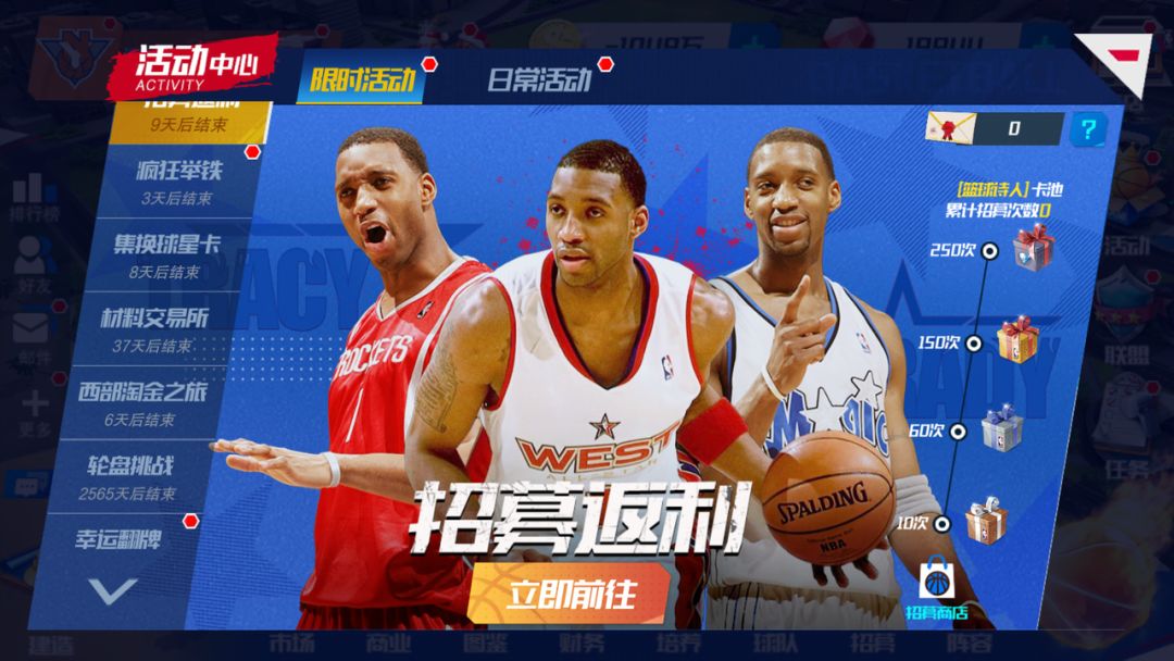 活动期间,将累计经理人在【篮球诗人】卡池的招募次数,招募次数到达一定数量后即可领取进度奖励。奖励中包含巨星介绍信,可用于在招募商店中兑换限定球员。招募返利活动结束后,招募商店和巨星介绍信均会保留,经理人可随时进行兑换。