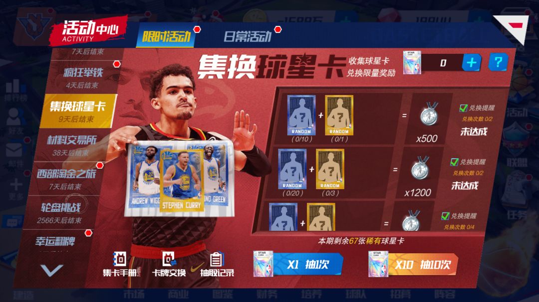 全新的限量球星卡登场!各位经理人可完成本期任务或购买限量卡包抽取球星卡。也可和其他玩家交换收集到的球星卡。最终,根据激活球星卡图鉴个数获得对应奖励,同时可在活动内使用收集到的球星卡兑换相应的奖励。