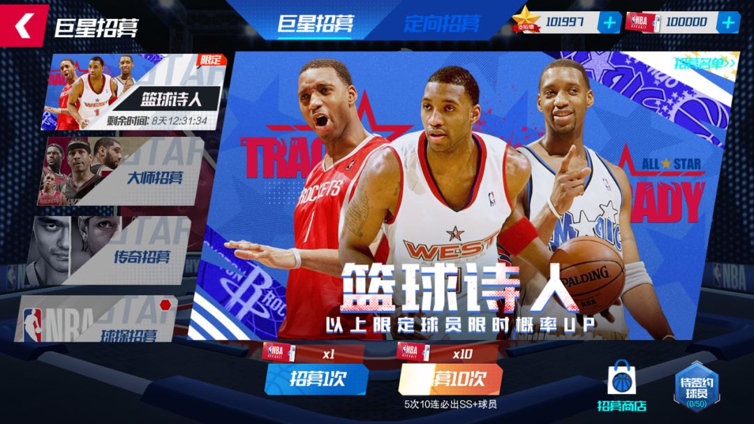 活动期间内,在“篮球诗人”球员池中,抽到新增限定全明星特雷西·麦克格雷迪的概率up!