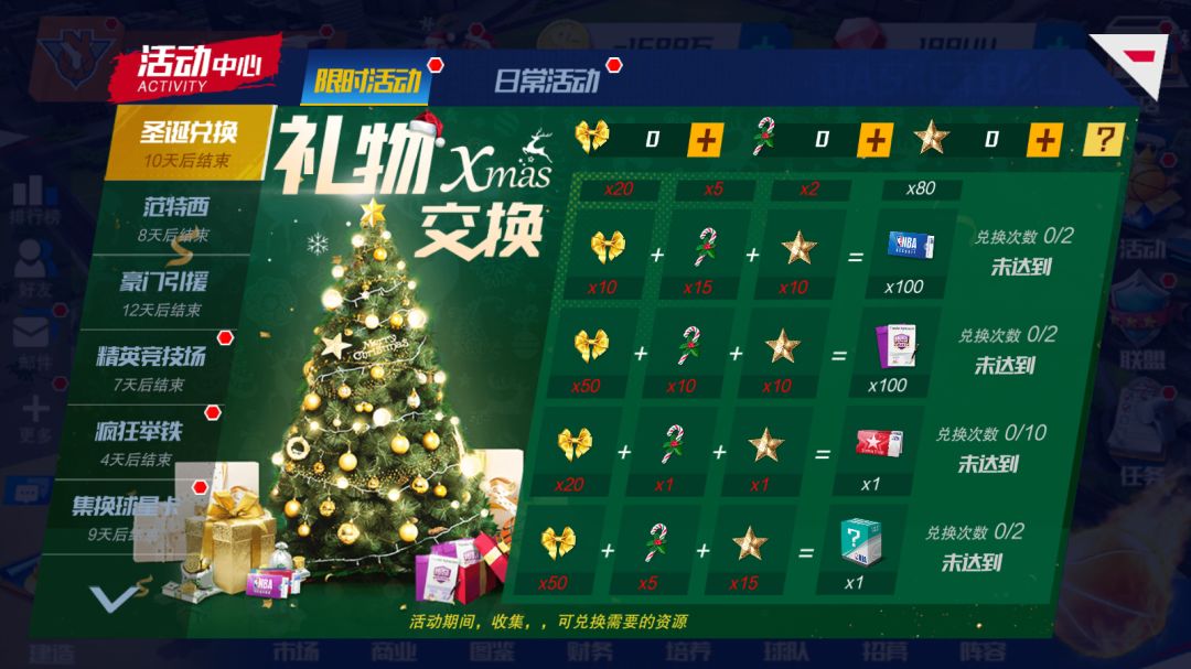 活动期间,在游戏内收集幸运星、拐杖糖和蝴蝶结彩带,来兑换圣诞树下的礼物吧!