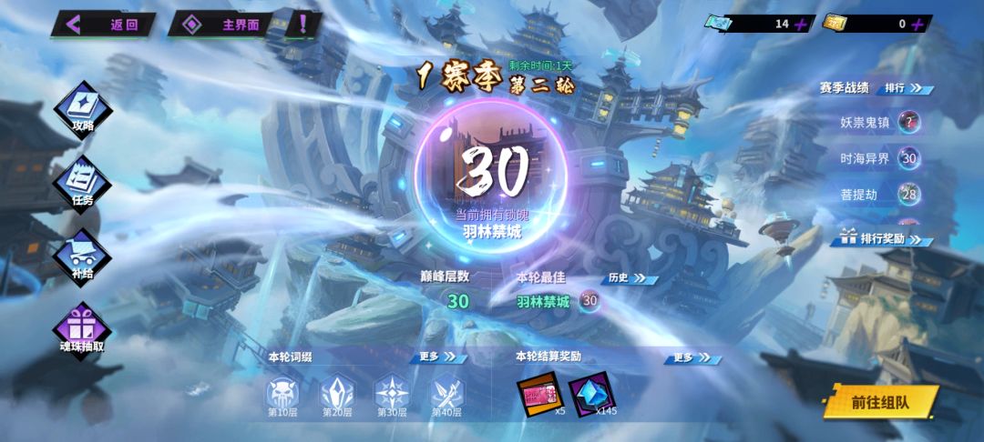 (更新第七天进度)《刘羽禅攻略》SSR+刘冰塔前三!总榜第10。蓬莱30层。浅析平民冰队手法拔高自己上限