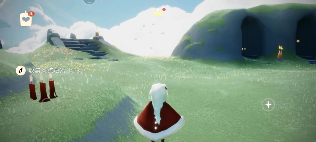 任务三:“收集30点烛光”,在图中收集红色蜡烛的烛火即可完成该任务。跑图顺带就能完成的一个超级简单的每日任务了。
