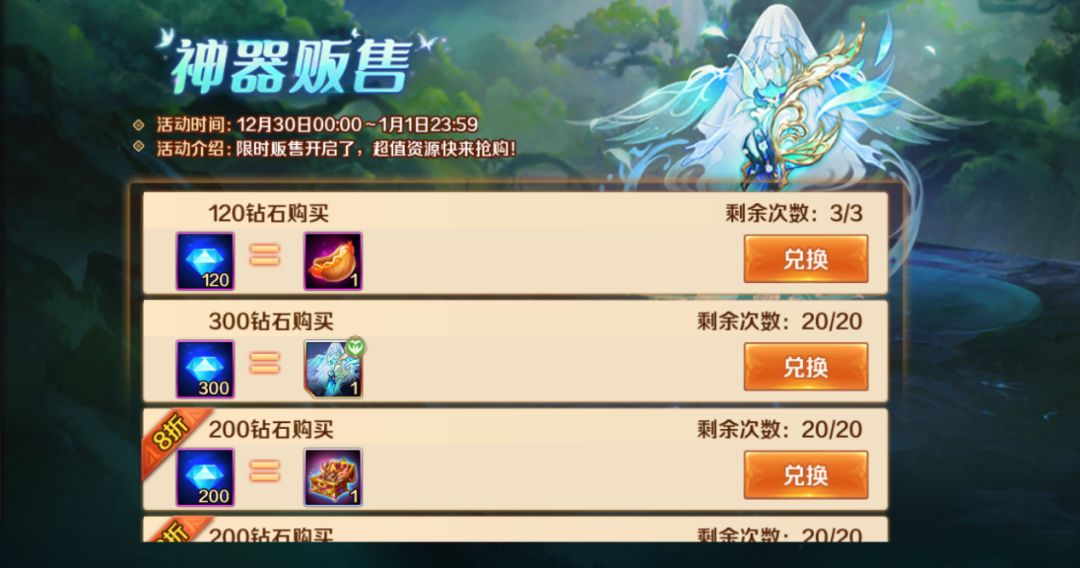 活动时间:12月30日-1月1日(兑换持续到2日)