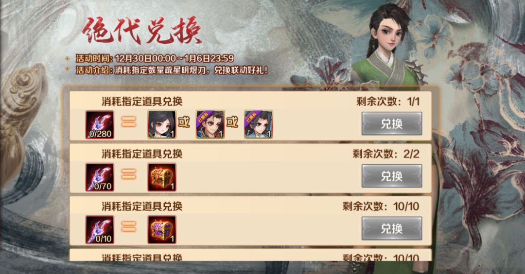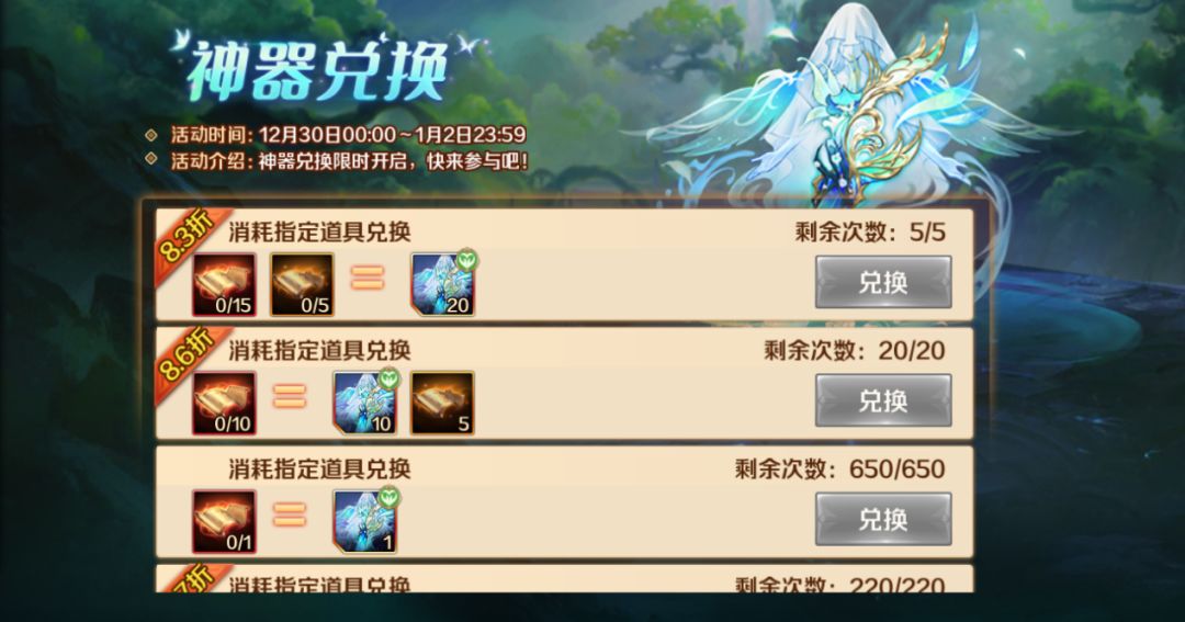 活动时间:12月30日-1月5日(兑换持续到6日)