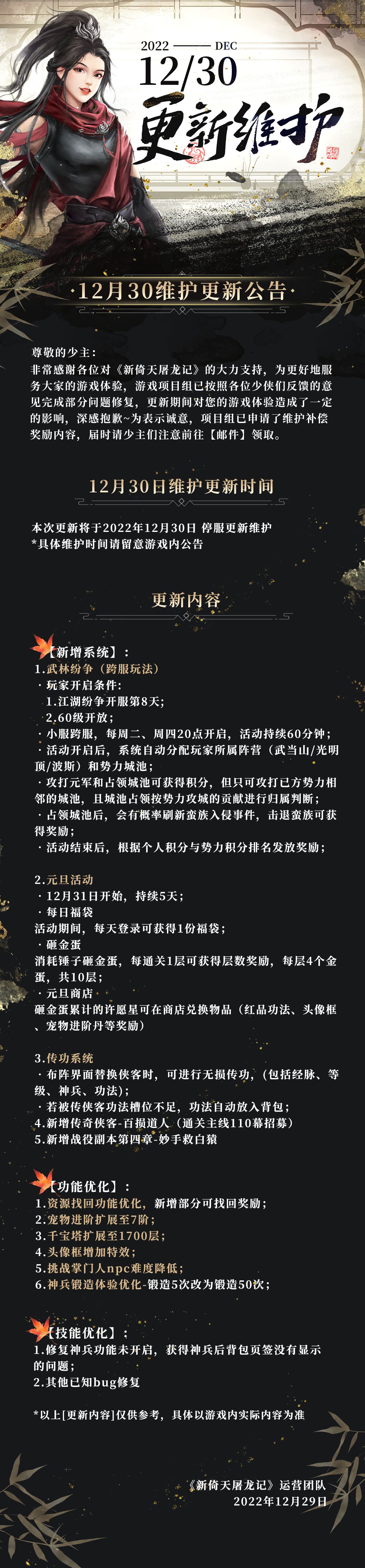 12月30日维护更新公告