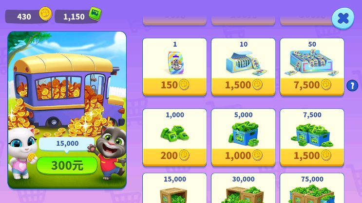 还有就是我们平时的客厅中也会时不时赠送我们一个卡包,可以留意一下。最后当然是使用巴士币带着汤姆猫家族出去到各种不同的商店带回精美的卡包啦!