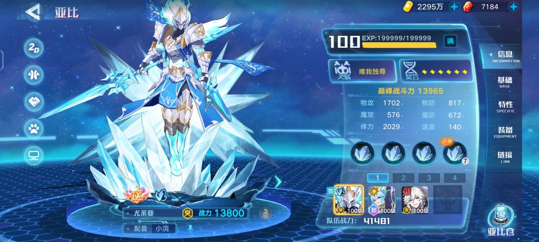 说明一下这里为什么都选神秘系亚比,因为冰系对神秘系是绝对克制,逆元亚比的链接对神秘系有100%的克制加成