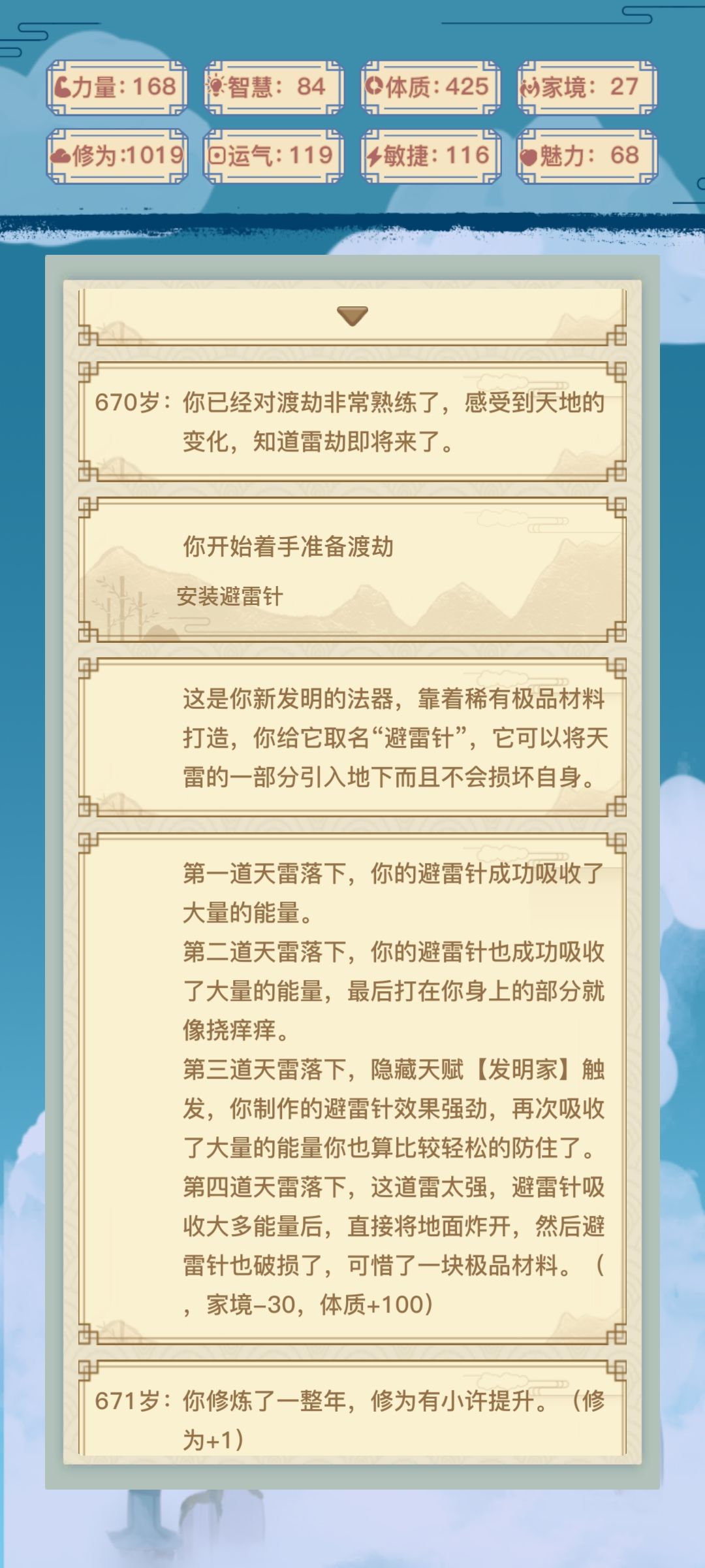 接下来是渡劫,只要渡劫成功体质就会大幅度增加,所以保证第一道渡过就行。