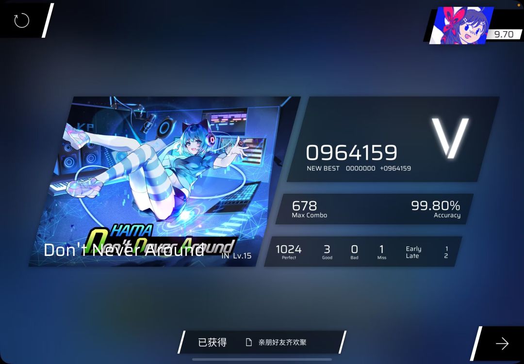 每次打出更高的准度或者成绩,可能会先高兴一阵子,然后陷入一种莫名的惆怅,感觉自己可以做得更好但又没完全发挥好:这次是双押爆g,那次是尾杀断连之类。