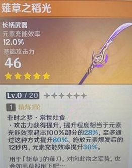 薙草之稻光的基础属性跟同类型武器例如雾切之回光和飞雷之弦振相比并不出色,甚至相比较下薙草之稻光比较弱。300%的元素充能效率薙草之稻光能提供的攻击力加成也只有56%。