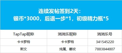 ■连续发帖签到3天及以上:银币*5000,后退一步*1,初级精力瓶*5,小木槌*1