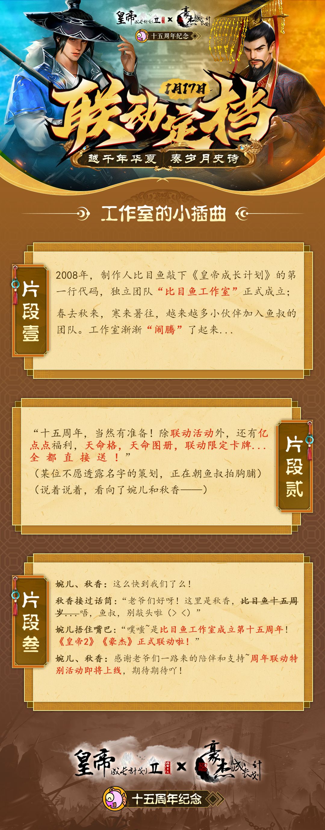 比目鱼十五周年纪念,《皇帝2》x《豪杰》联动定档,1月17日正式上线!