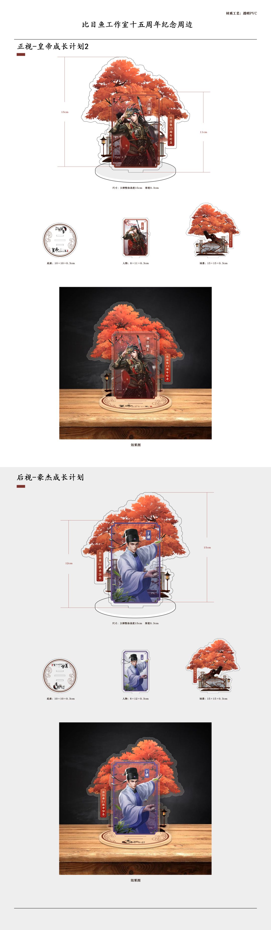 本次联动,制作了六款全新联动纪念周边(皇帝2、豪杰各不相同),包含立牌、鼠标垫、卡套、手机支架、金属书签、折扇,参与联动主题论坛活动即有机会获得!数量有限,送完为止!