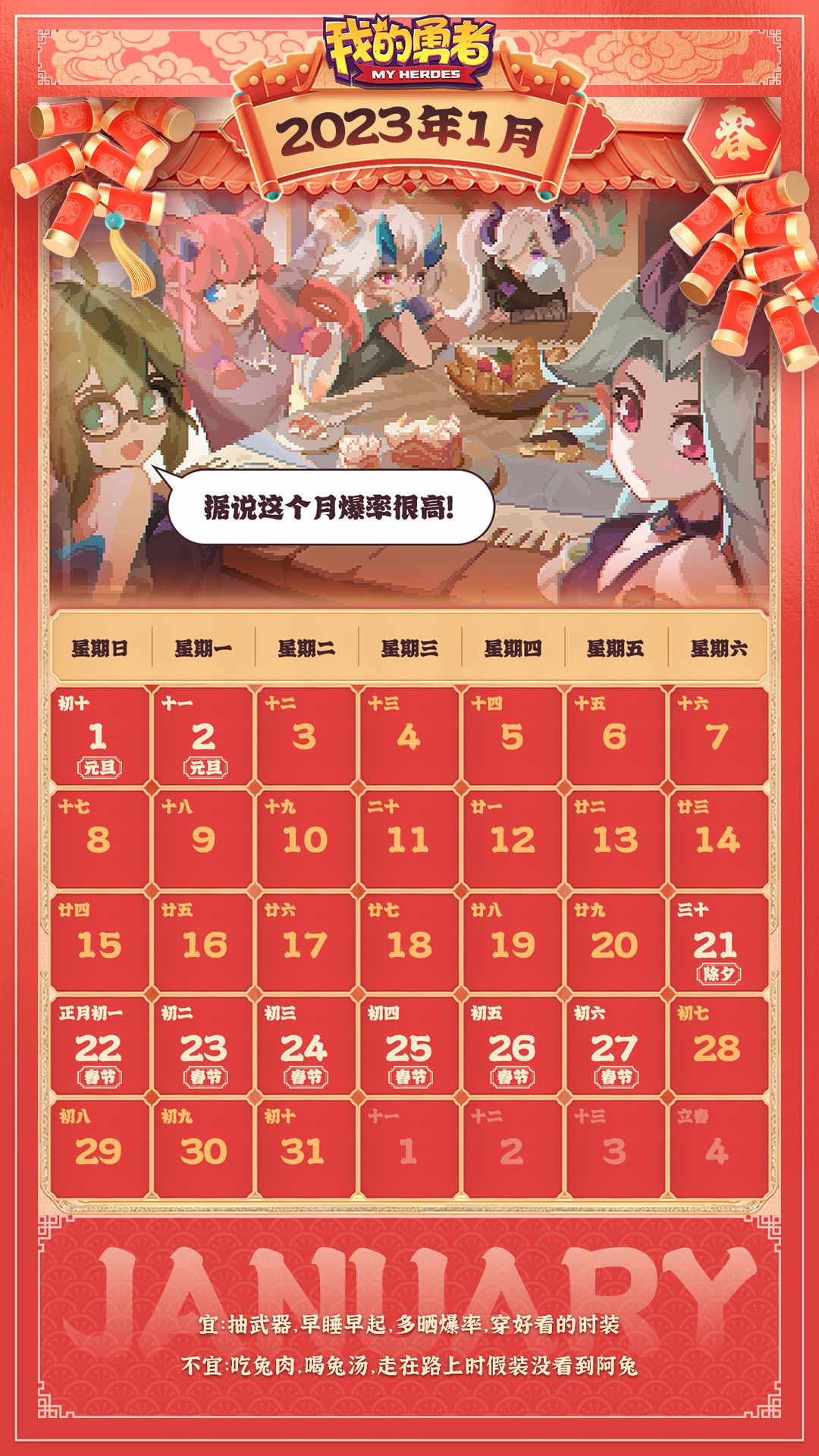 她们还准备了一份月历,希望新的一年的第一个月勇者们能天天看到她们!