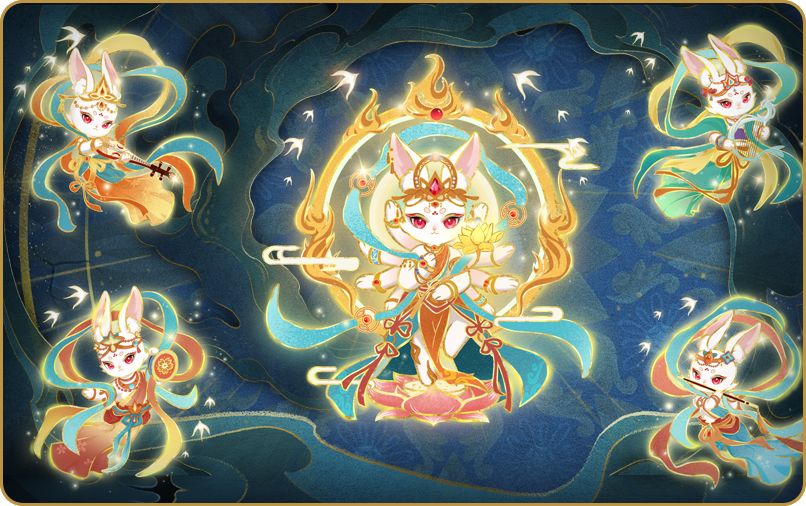 珍贵的敦煌秘宝竟在波啦哩现身!敦煌联动盲盒礼物送各位球宝,开启敦煌祥云礼盒、敦煌飞天礼盒,又美又仙的祥瑞玉兔陪你迎接新的一年!