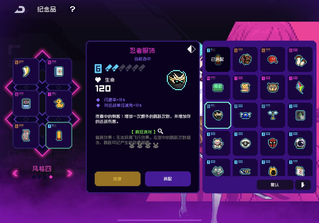【忍者服饰】如果没得选,那首选就是忍者头,近战伤害加双跳很不错的道具。