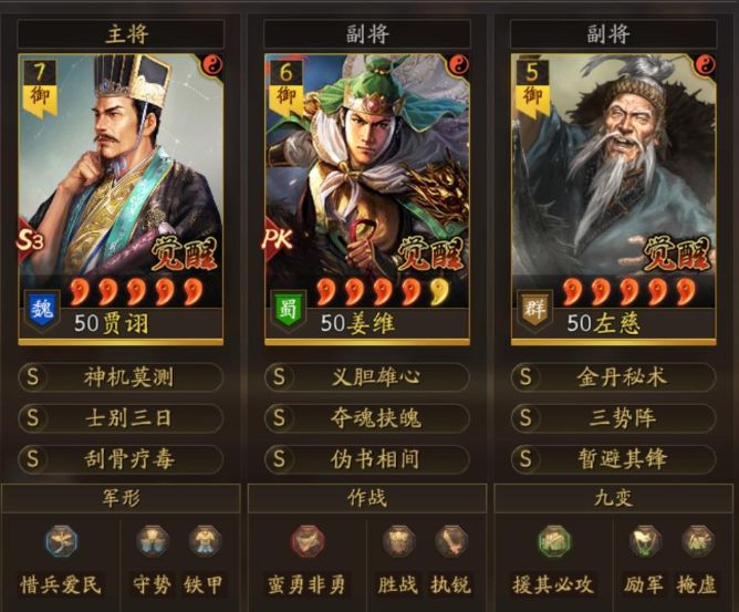 (副将)左慈,战法搭配:三势阵+暂避其锋