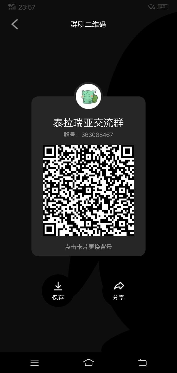 宣传一下泰拉群聊,群内氛围和谐友善,有热心群友解答萌新的各种疑问。 也有开荒选手与你一起共赴下一场冒险!无论是萌新亦或是大佬都欢迎加入。 一起守护更好的tr!🐧🐧:363068467(号已经发在了区,可以复制)