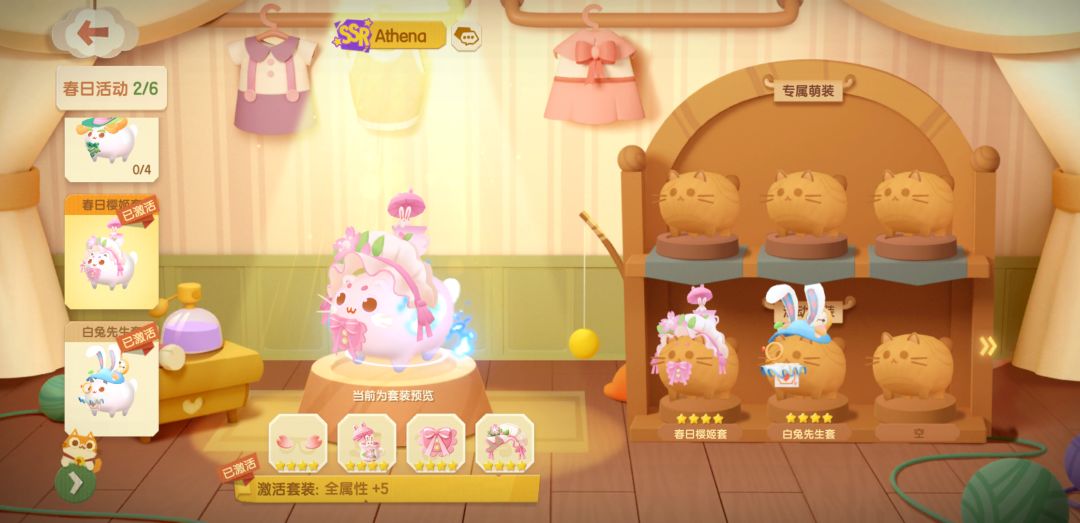 然后我们要知道每套活动萌装每个猫都可以激活一次。(下图两只猫,两套春日套装,图2暂未激活但是已经可以激活了。)