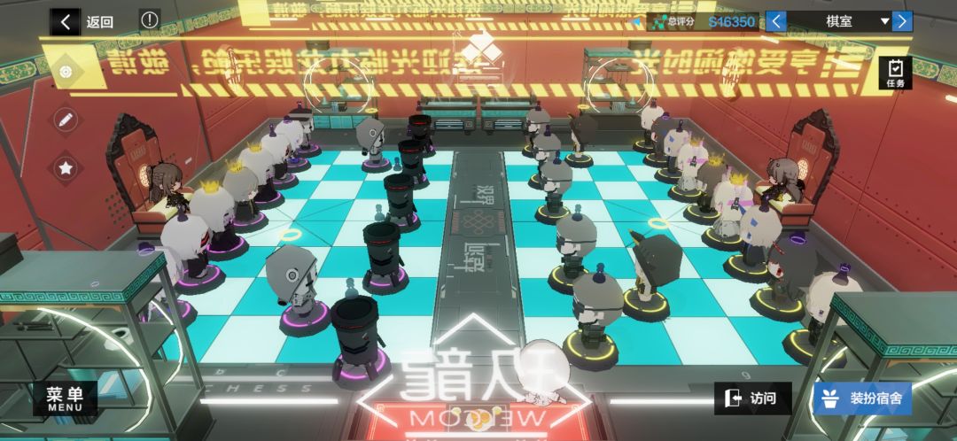 不过这个主题家具大部分是不能和地板的棋盘实现对称的